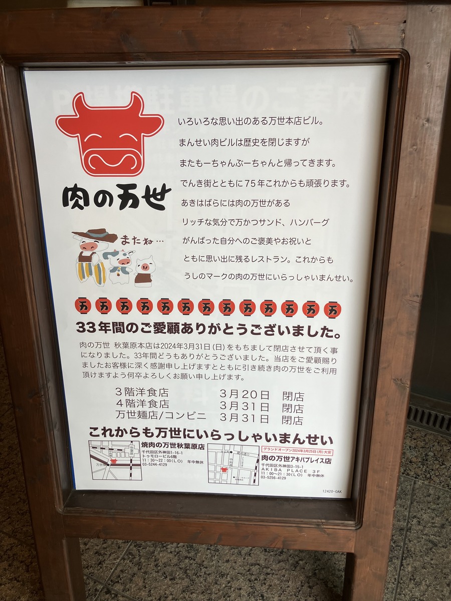 3月に閉店と発表された肉の万世、秋葉原本店に来ました。