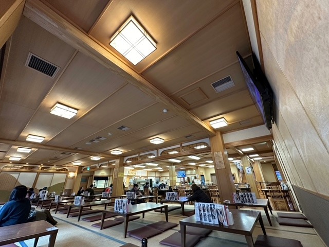 大きなモニターで国会中継が流れてて