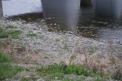 どこまでが天然の砂利なのかよくわからない様子です。