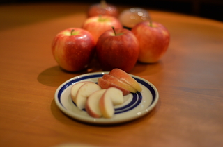 くし形切りで皮をむいたり、ウサちゃんにしたりしません。