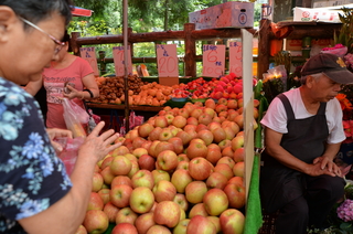 市場に並ぶりんごです。