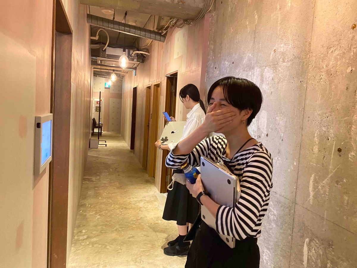 廊下でばったり会った