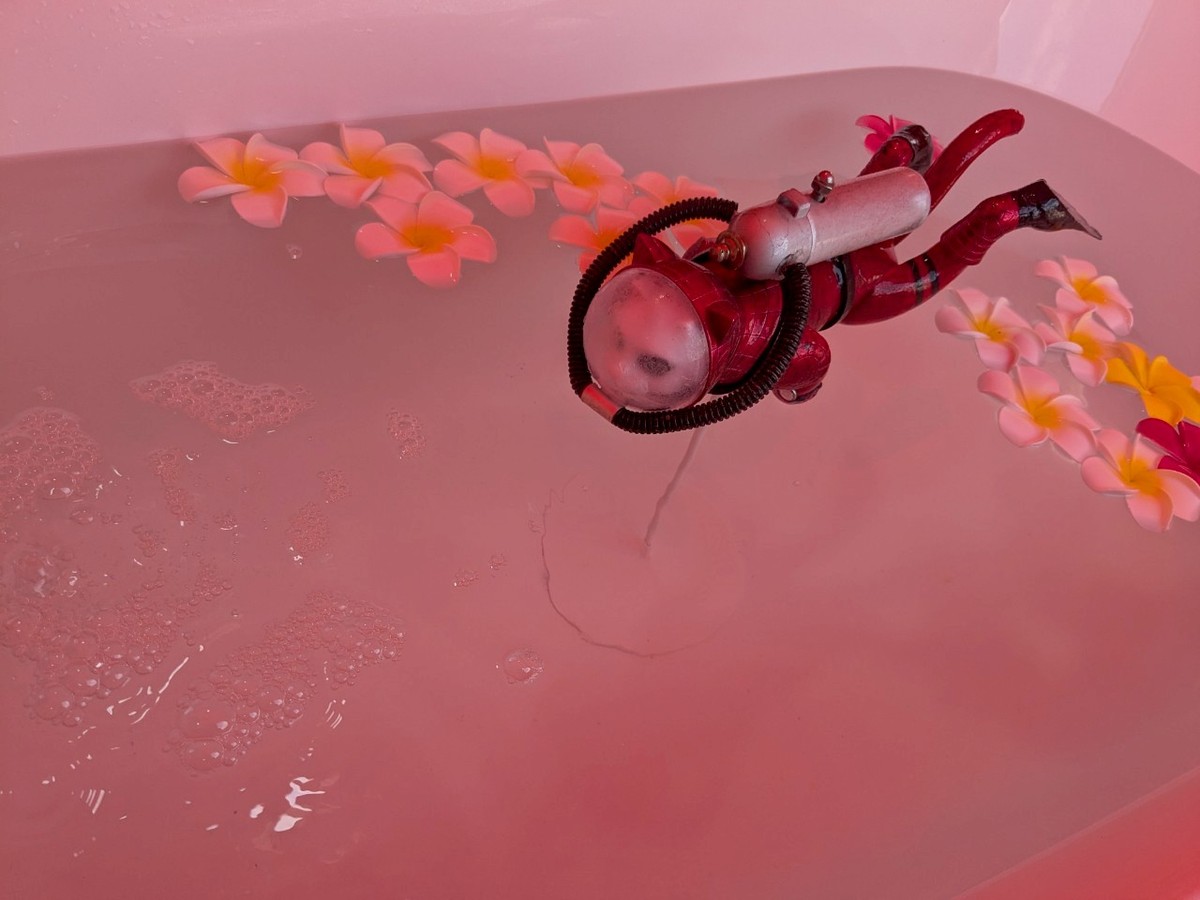 宇宙遊泳の練習をしてるの。