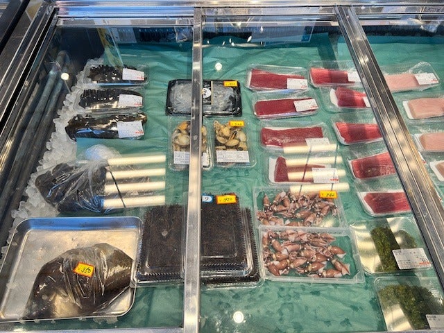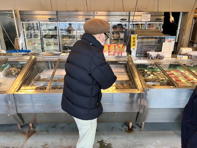 魚屋さんの店先で、