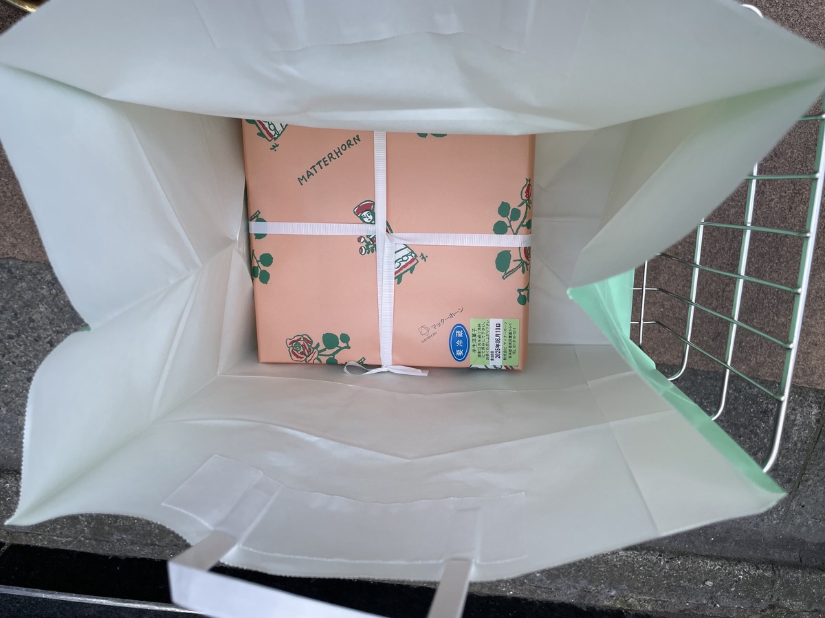 予約をしていなかったので開店前に到着するように行ったら、すでにたくさんのお客さまが行列しているではありませんか。ドキドキでしたが、無事にお目当てのケーキを買えました。こちらを抱えてのちほど出社します。