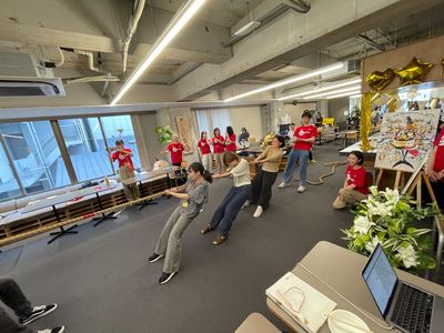ブルーミームさんとつなを引いてみることに。