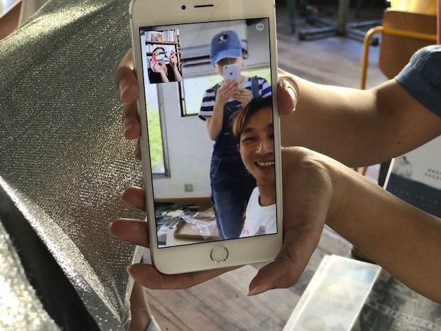 まだルームAでジュースを飲んでいる