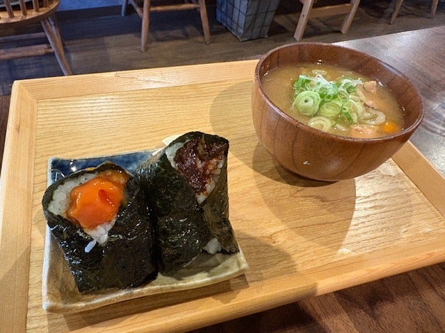 ふきみそ、黄身のしょうゆ漬けおにぎりにしました。