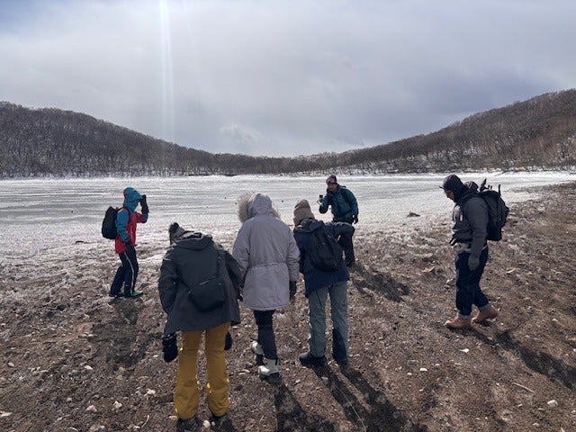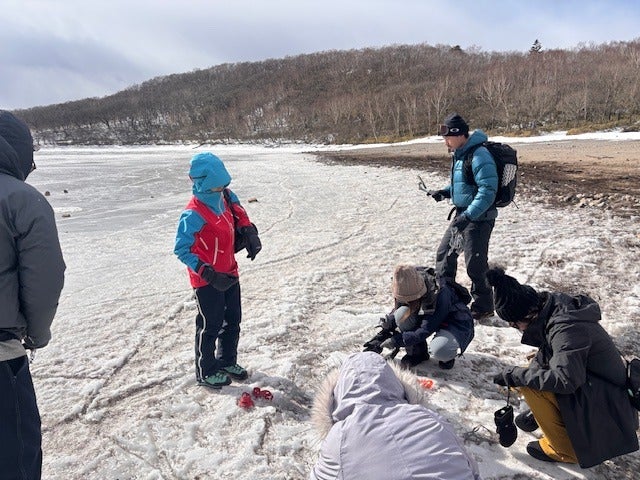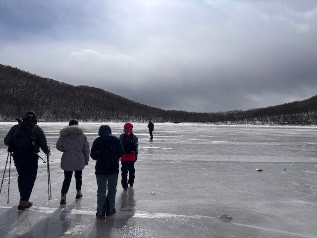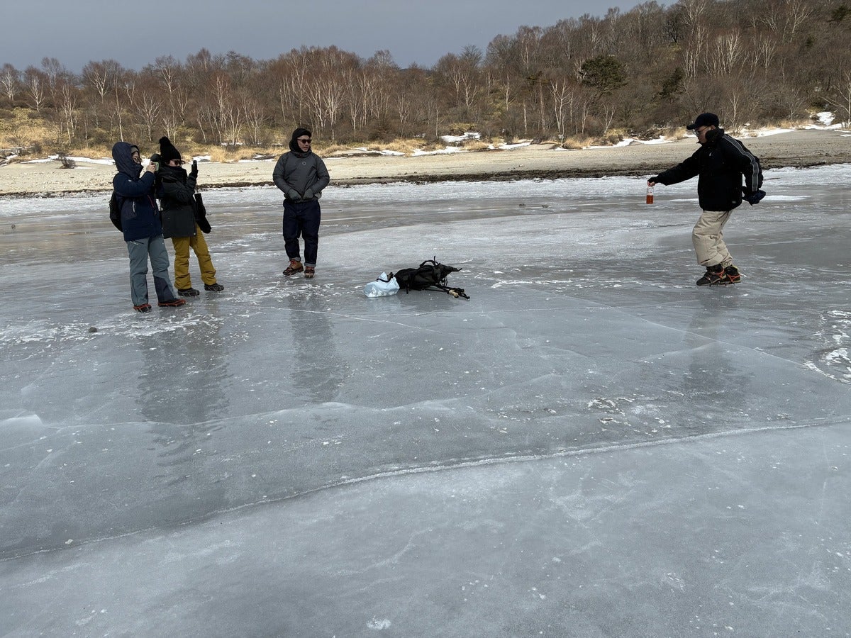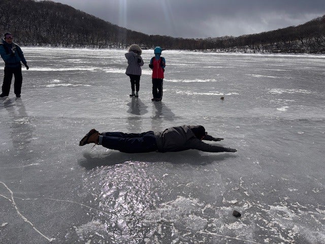 小沼の氷の上にみんなで