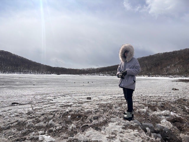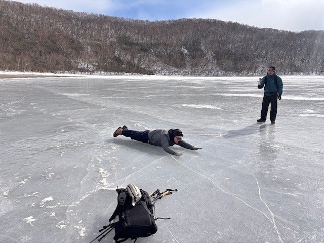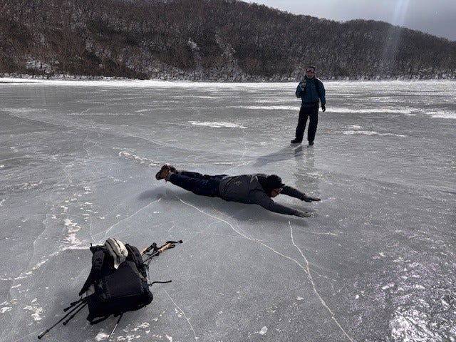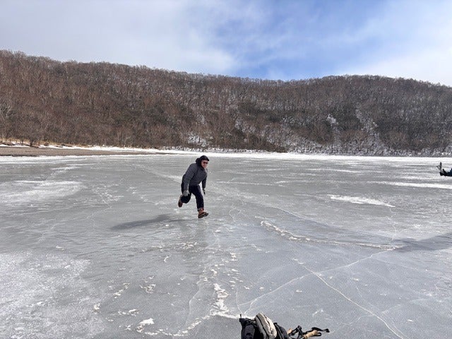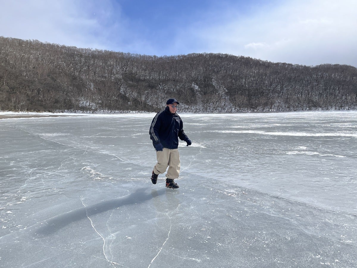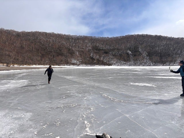 「凍った湖を歩く」?