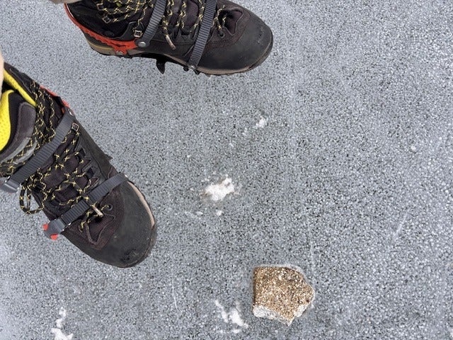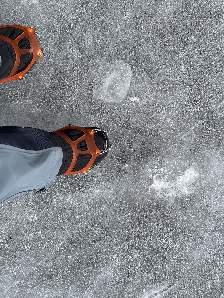 靴に「チェーンスパイク」や