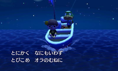 流れ星がぴゅんぴゅん降る空、濃い青の海。