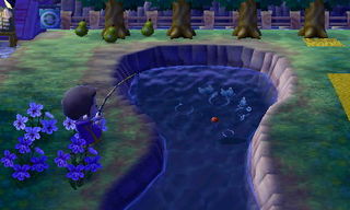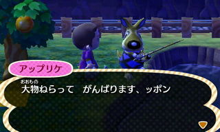 池でアップリケが釣りをしていました。