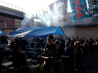 市場で朝めし、