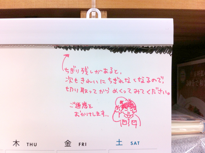 シールで勤務表を貼ったり