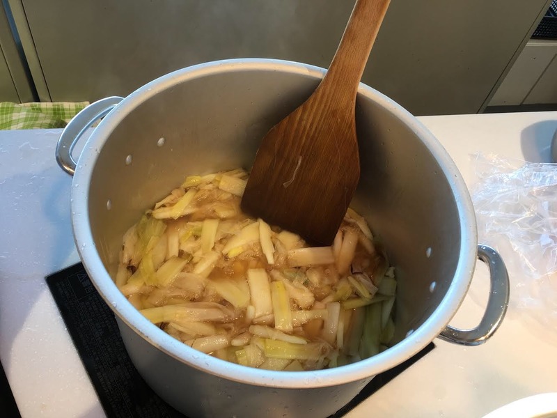 ネギの青い部分は鶏ガラと一緒に。