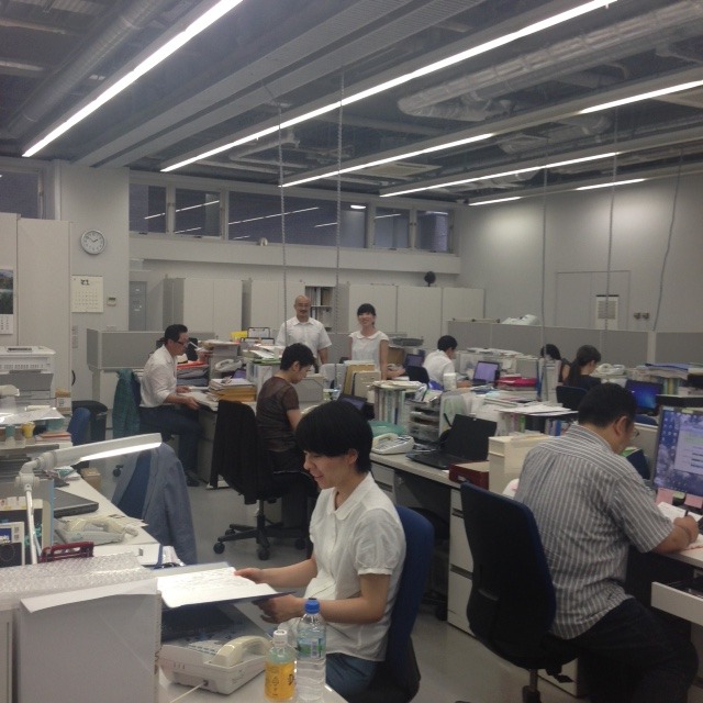 2階の事務室で、