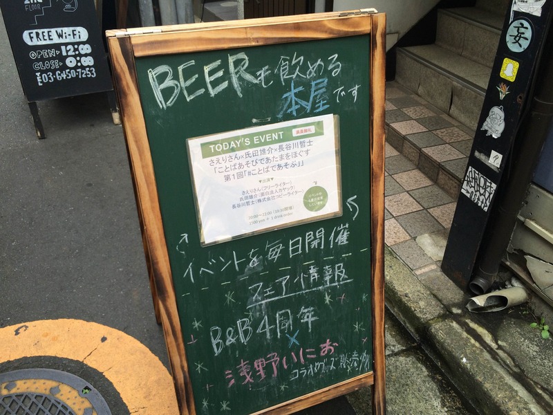 2016/07/28 15:00 下北沢にきました 下北沢のB&Bさんにやってきました。毎日イベントやセミナーを開催されている本屋さん。店内にはB&Bさんと浅野いにおさんがコラボした4周年記念グッズなども置いてありました。チラシを置くことをお願いしたところ、「どうぞー」と言ってくださったので、入り口近くのスペースに置かせていただきました。ほかにもいろんなお知らせがありましたよ。見ているだけでもたのしいです。ドコノコのチラシも手にとってくださいね。
