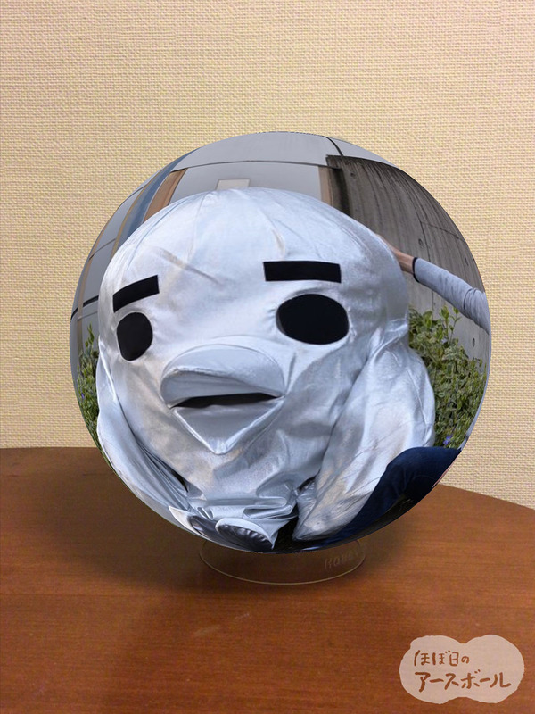 ▲アースボールに投影してみました。ほら、なんて不思議な写真でしょう。