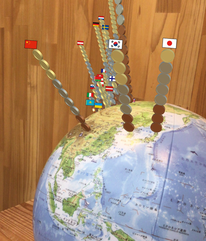 大会期間中、ほぼ毎日更新していくメダルタワー。