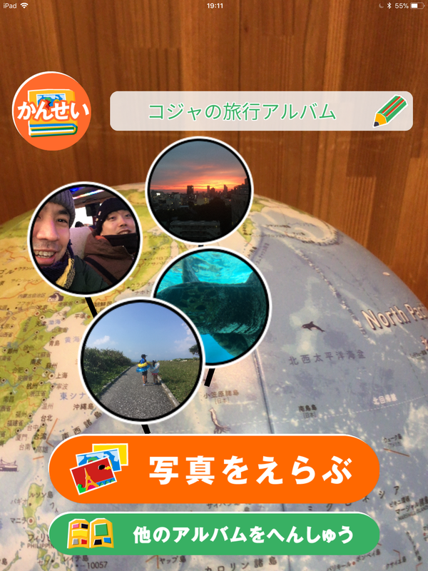 ・モギの「旅行アルバム」お試しレポート・しおりとひなの「インベーダーアルバム」編ではさっそく、自分の旅行アルバムを作ってみます。