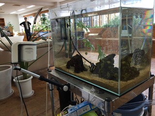 彼は昨日も、いろんなサイトで魚の引越しを調べ、