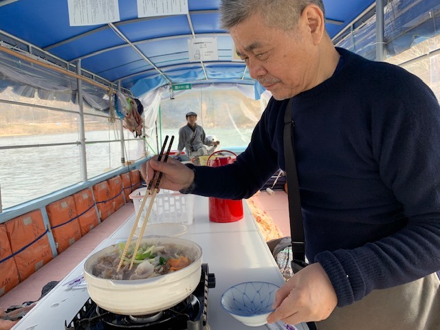 船頭のサイトウさんのトークが