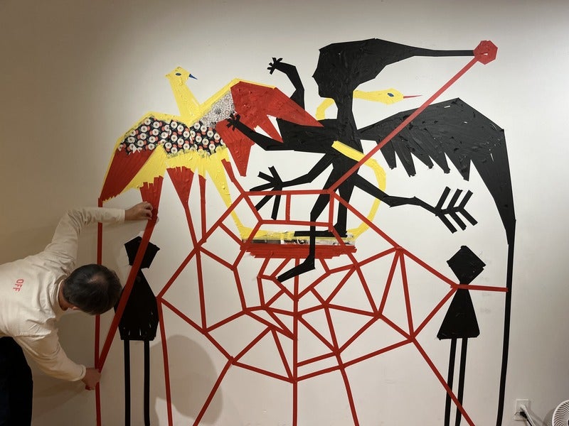 ばあっと広げて福田さん、