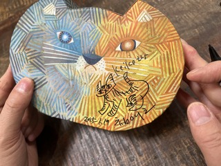 サインをしている横から、
