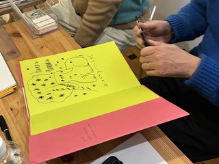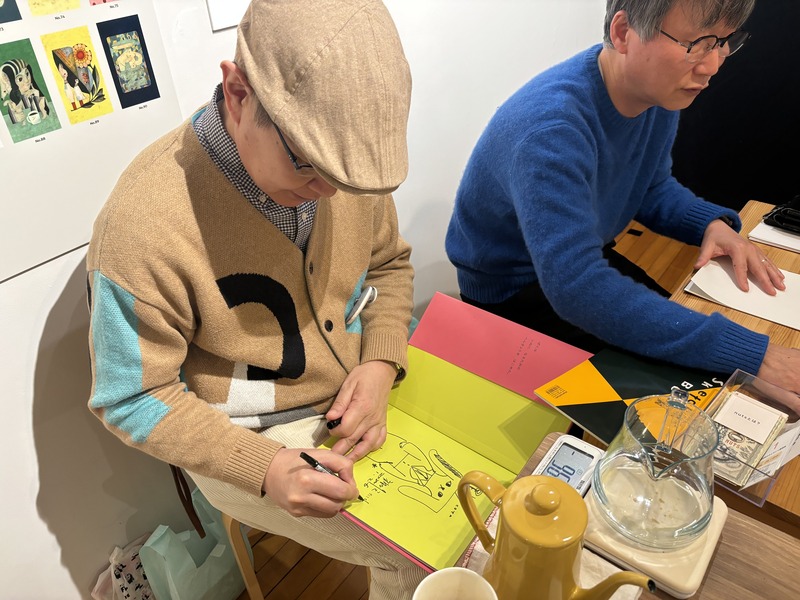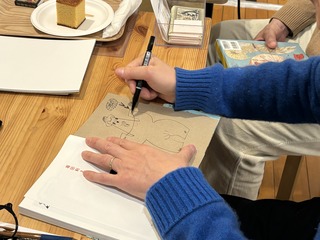 山下さんはなにをしていたかというと『ぼくはうさぎ』にサインを。