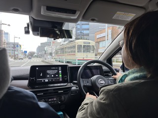 路面電車が見える。