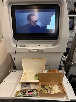 お食事しながら映画見てますね。