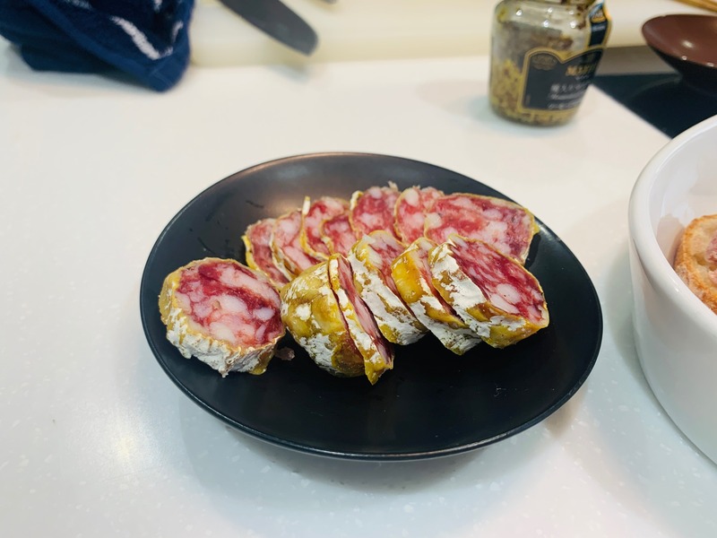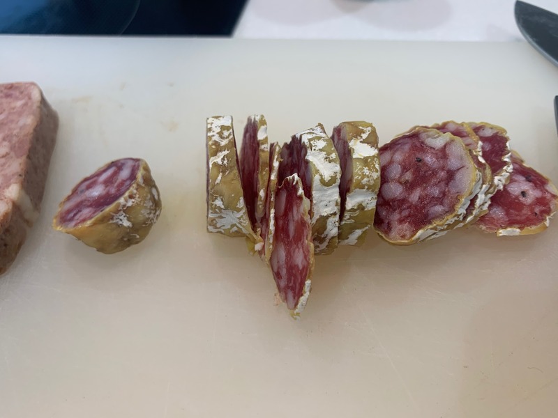「ランダムのサラミも盛りつけました!」