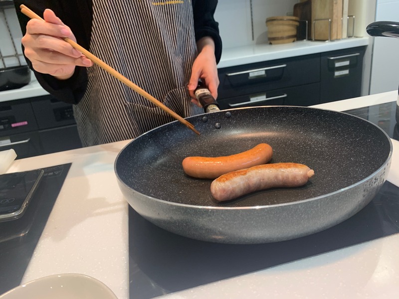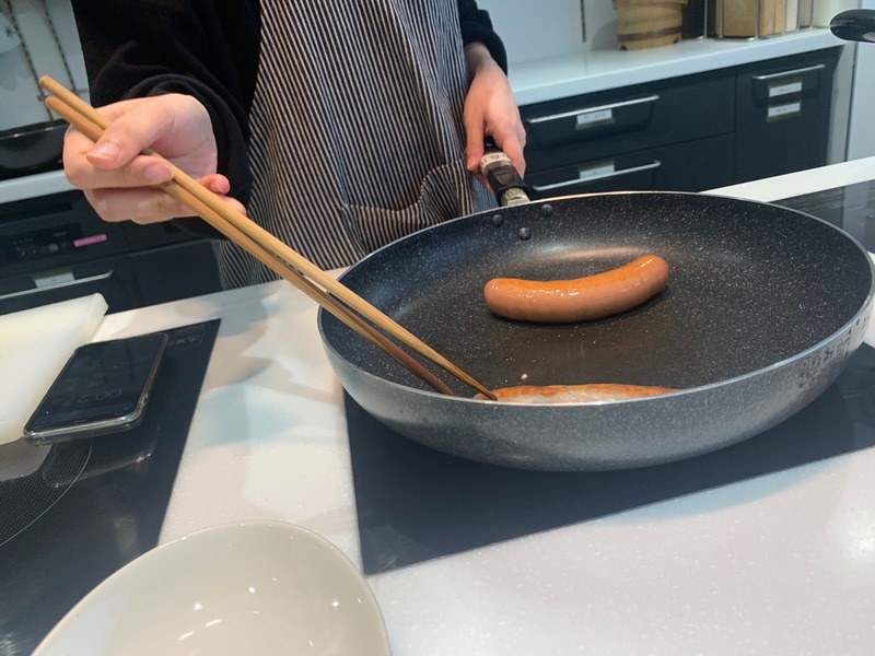 このソーセージの余計な焼き時間を利用して、