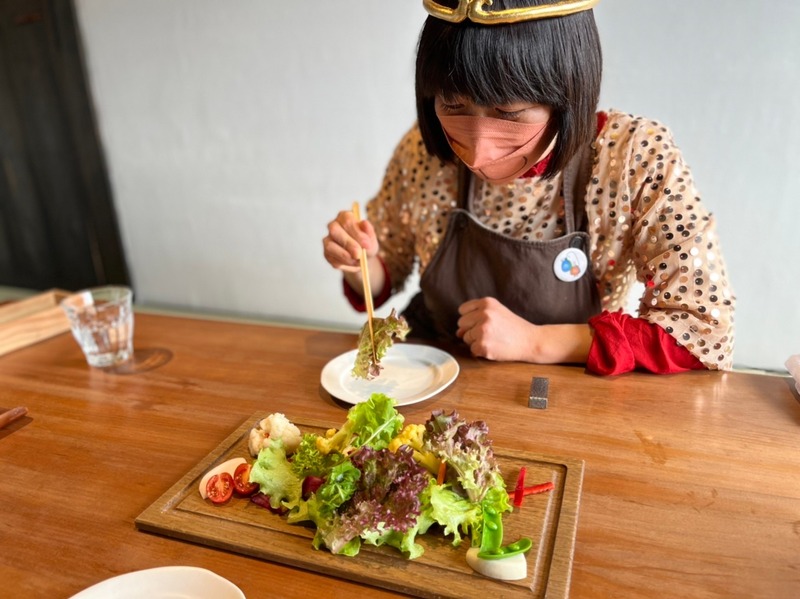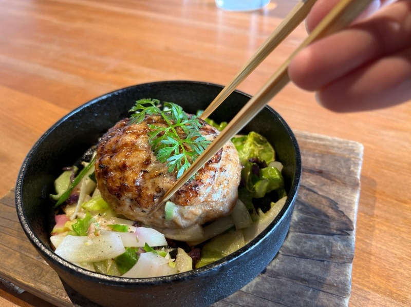 豚ハンバーグも、サラダも、