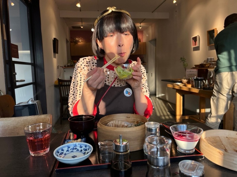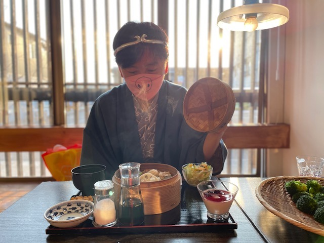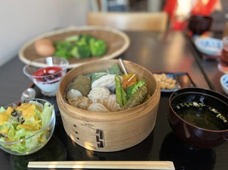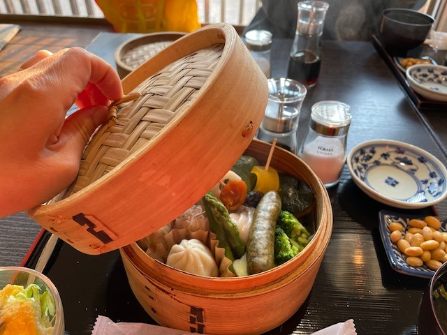 蒸した野菜を持ち込んで、
