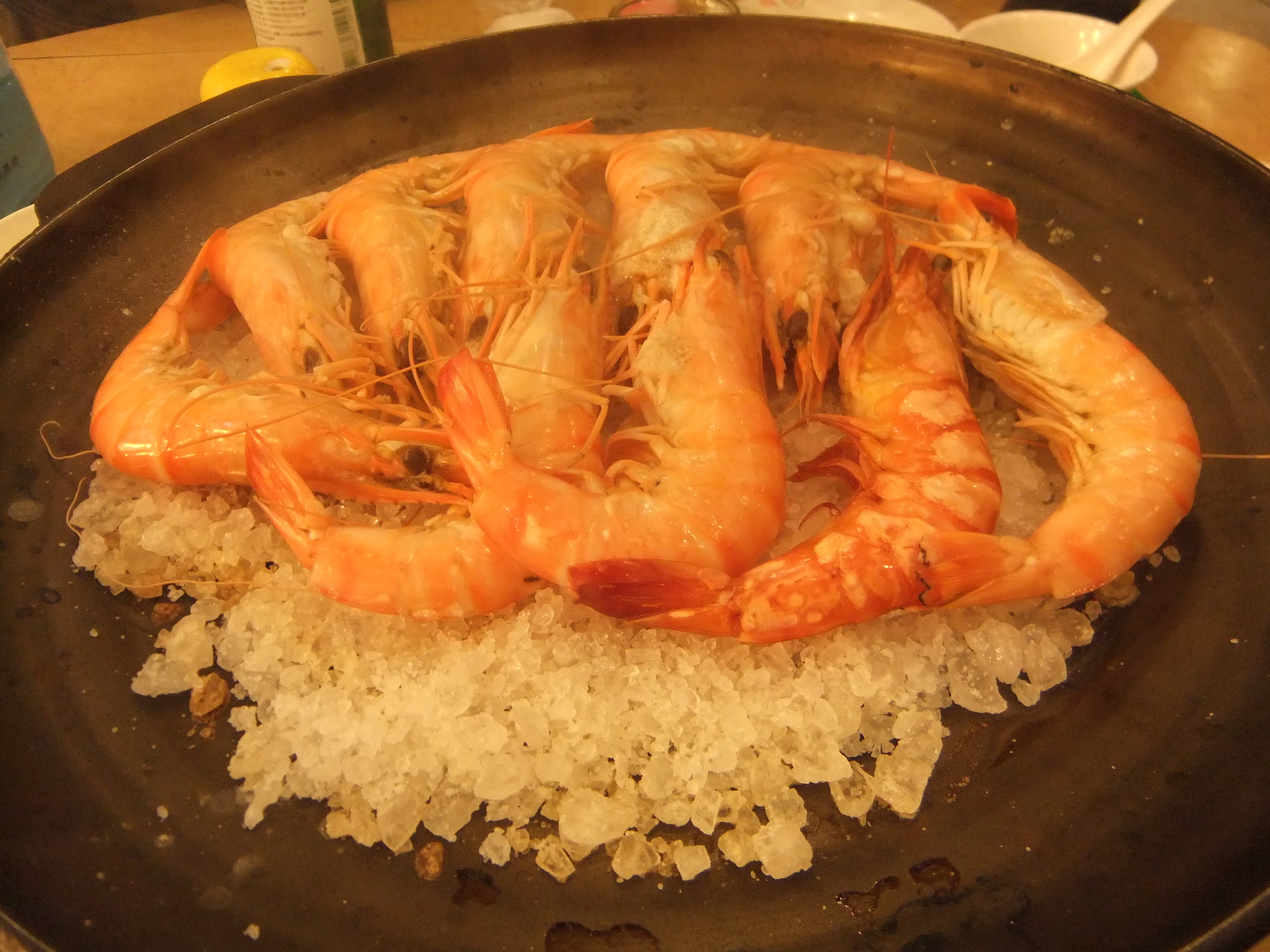 塩焼きといっても、岩塩を敷き紹興酒を加えた浅い鍋に
