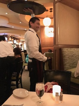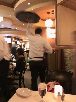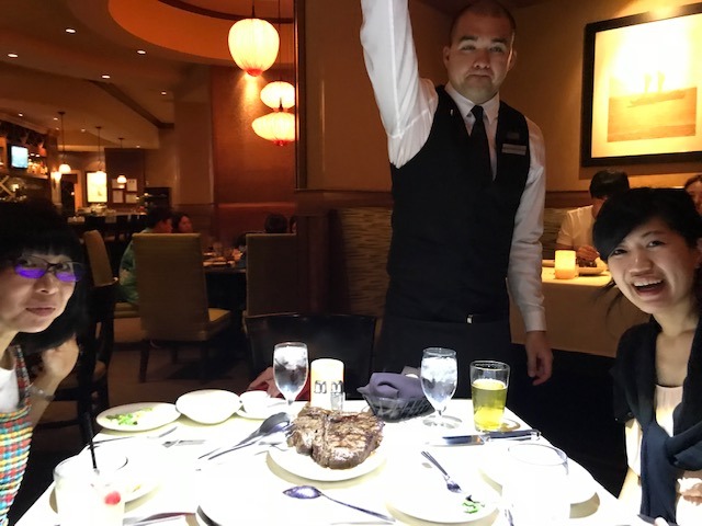 お盆の上には熱々のお肉が乗ってるんですよ。