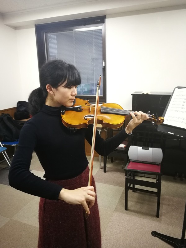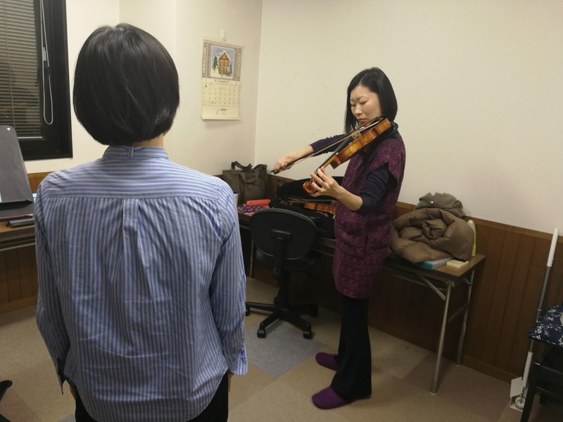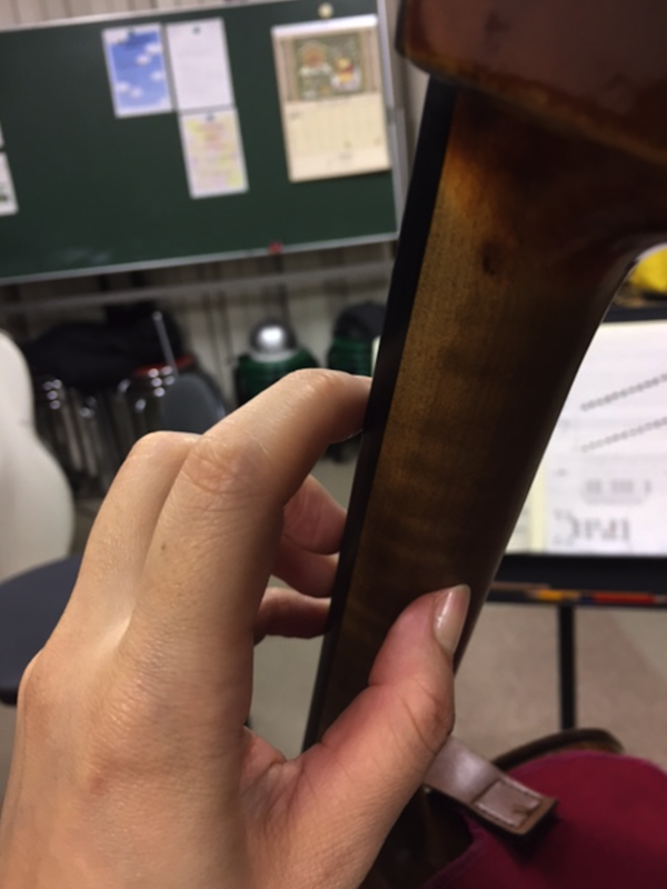 本来は弓の重心近くで弾くとよい音が出るそうです。
