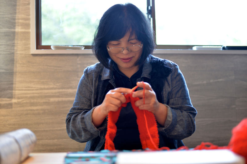 刺繍をする、大きい男の人ってかわいらしいなー、