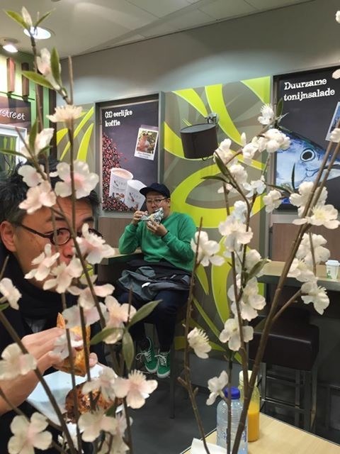 駅前で6人で食べました。