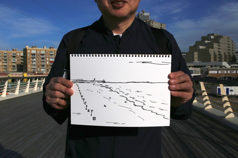 ゴッホゆかりの浜辺に立つ、