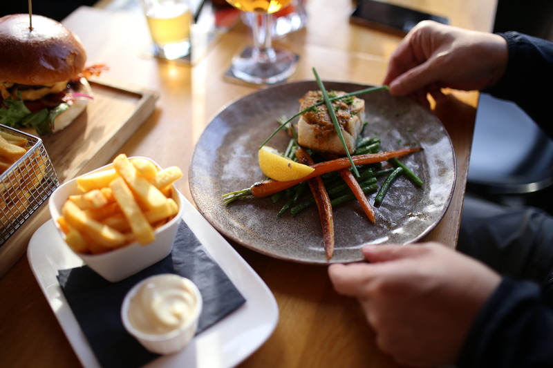 先生はふとった白身魚の料理を、