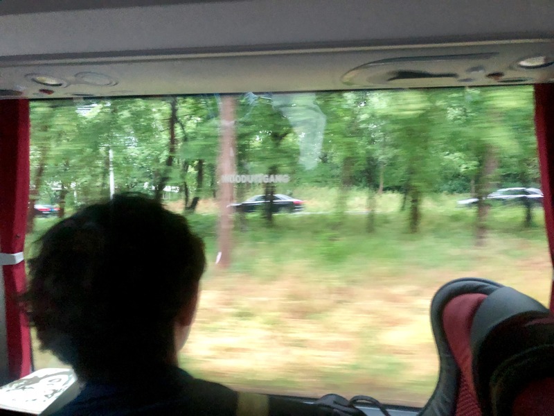 「ハイウェイを駆け抜ける我がバスと、一瞬ですれ違っていったオランダ国王のベンツSクラス」