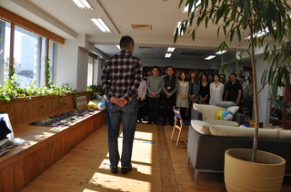 それでは、朝礼をはじめます! 弊社社長より、 今日のイべんとうにあたっての 心構えなど、ひとつ!