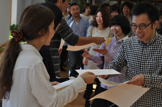 なにせ段取り嫌いの社長ですから 「かっこだけ、挨拶をお願いします」 と言ってみたところ、 「きちんとお弁当と向き合い、 お店側がなにをかんがえ、 どういう意図でお弁当をつくっているかを 考えましょう」といった けっこうちゃんとした挨拶が。