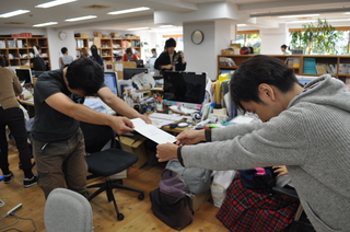 予算の2000円(オーバー分は自腹)と フロアマップなどを受け取り、 さぁ、行ってらっしゃい! 総勢約50人の大移動です! |