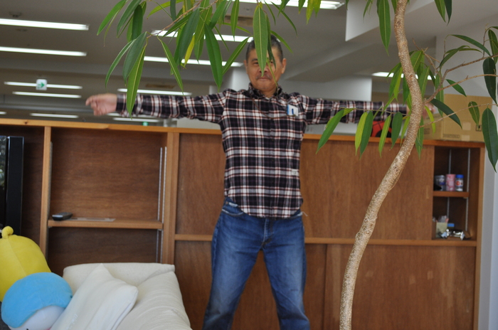 あ、弊社社長というのは、 観葉植物の陰でラジオ体操をしてる人です。 |