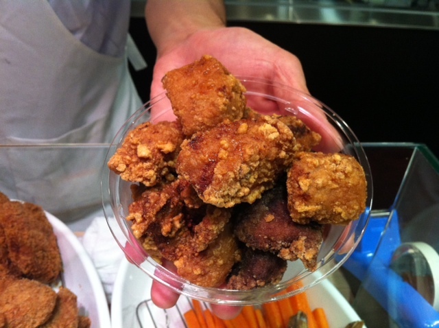 この店は鈴富さん。 お寿司もあるんだけど、 きょう惹かれるのは、こういう竜田揚げ。 |