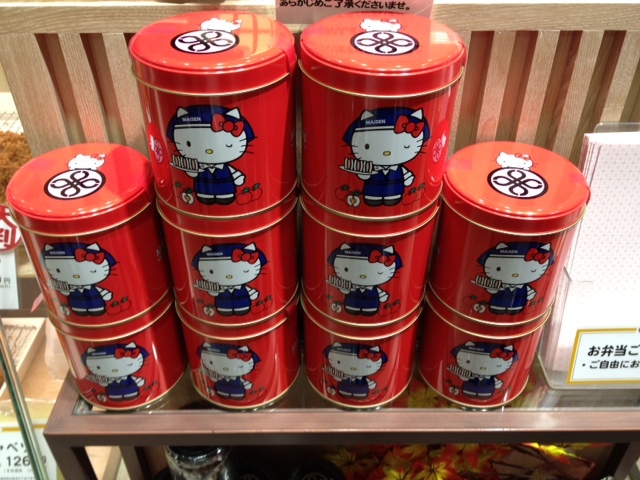 「とんかつまい泉」の制服を着たキティです。 かわいい〜!! 中身はラスクとのこと。 いっしゅん心を奪われましたが、 まだ何も購入していないので、 こちらは見送りました。